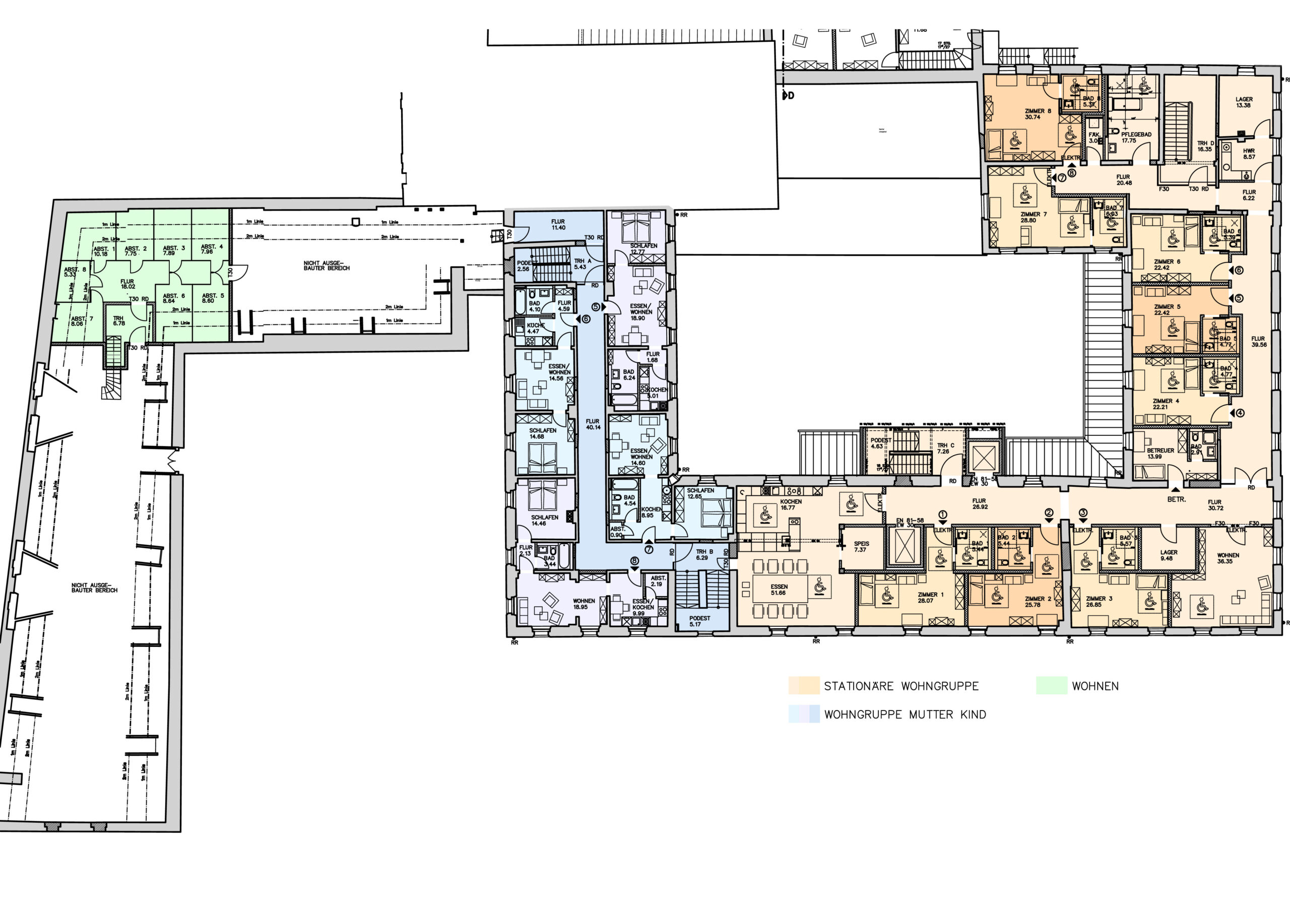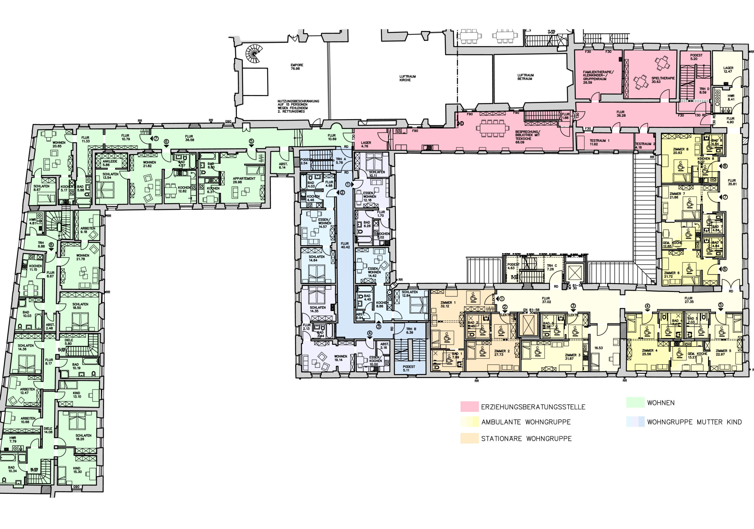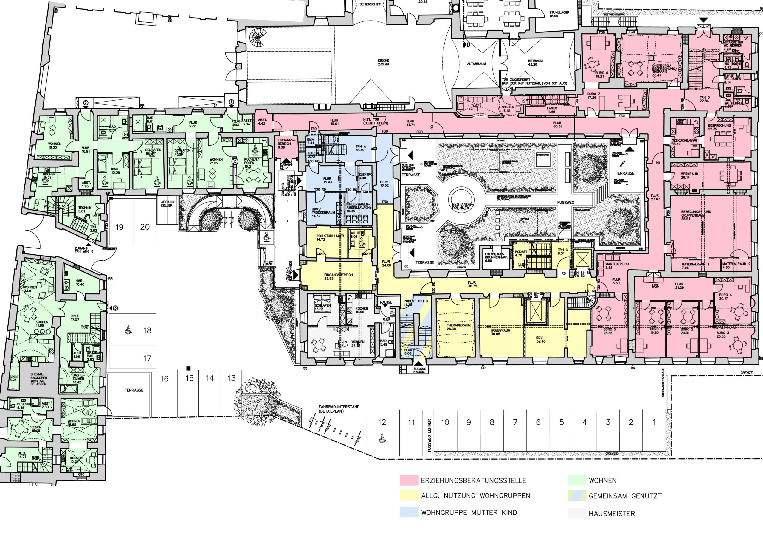 Einheiten: Erziehungsberatungsstelle, Mutter-Kind-Wohnen, Behindertenwohngruppen (1x stationär, 1x ambulant), allgemeine Wohnungen (2x behindertengerecht, 6x normal)