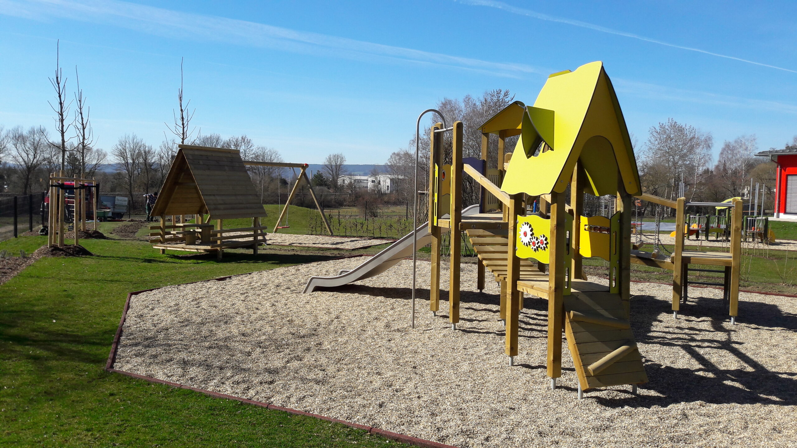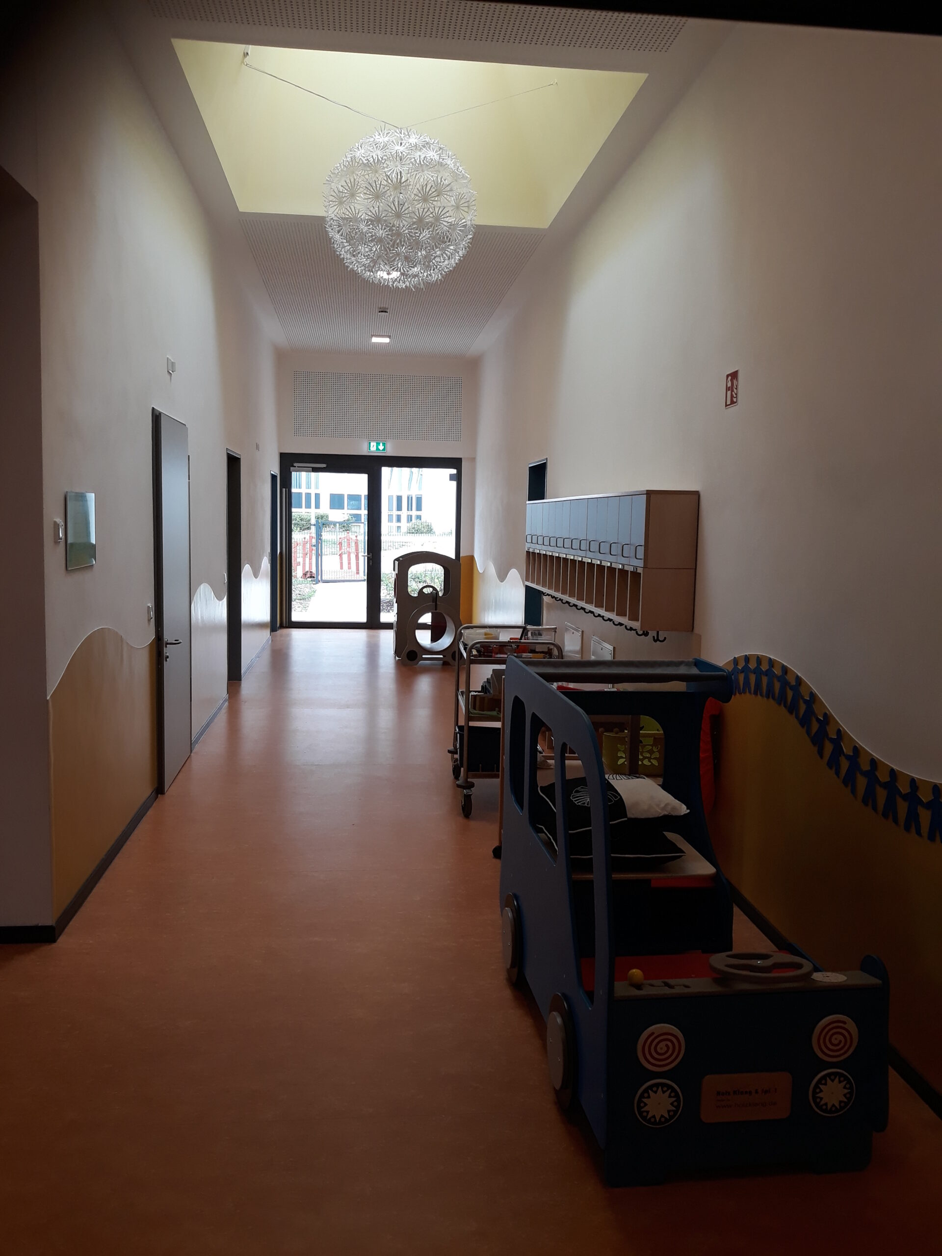 Auf dem Grundstück befinden sich neben einem 1.050 m² großen Außenspielbereich auch 20 PKW-Stellplätze, davon einer für Menschen mit Behinderung.